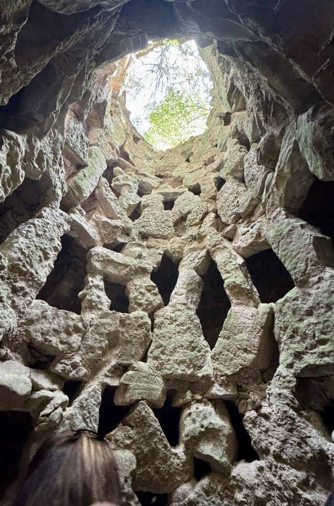 The original owner of the house meant for the grounds to be a spiritual journey, and each statue, construction, and fountain refer to purgatory and rebirth. The most stunning part (that we saw, anyway) as a sort of purgatory maze. We entered into a rock outcropping and found ourselves descending many stories into a sort of inverted tower, spiraling into darkness. Once at the bottom, we found ourselves in an underground maze, with loops and dark corners and a dead end behind a waterfall. Eventually we found the one exit and found ourselves back in the green, sunny gardens.